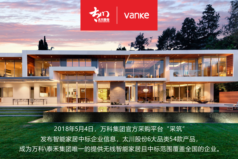 2018年万科官方采购平台“采筑”组织万科、泰禾集团发起的智能家居联合招标,目前已经定标,太川股份成为两大集团无线智能家居产品的全国供应商,合作期限自2018年3月31日起至2020年4月30日。