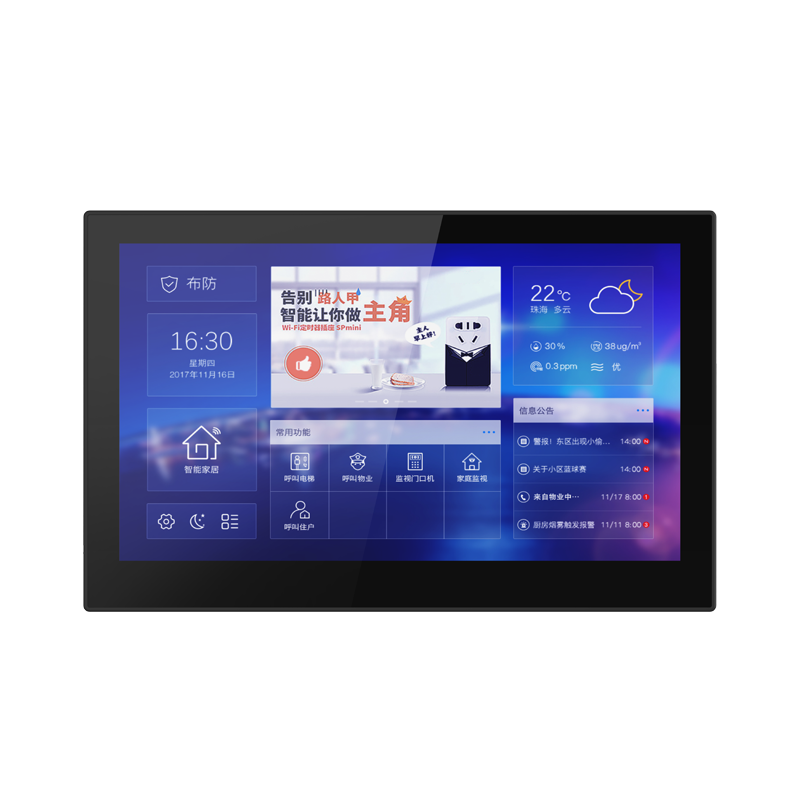 产品参数 操作系统 Android 屏幕 7″TFT 操作方式 电容触摸屏 分辨率 1024*600 通讯方式 TCP/IP、WiFi 外置接口 电源、门铃、安防报警 电源 DC12V1A 产品尺寸 165.8*105.1*10mm
