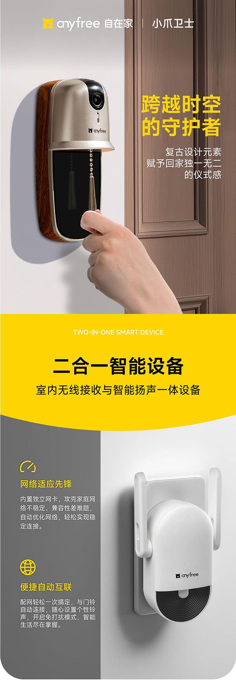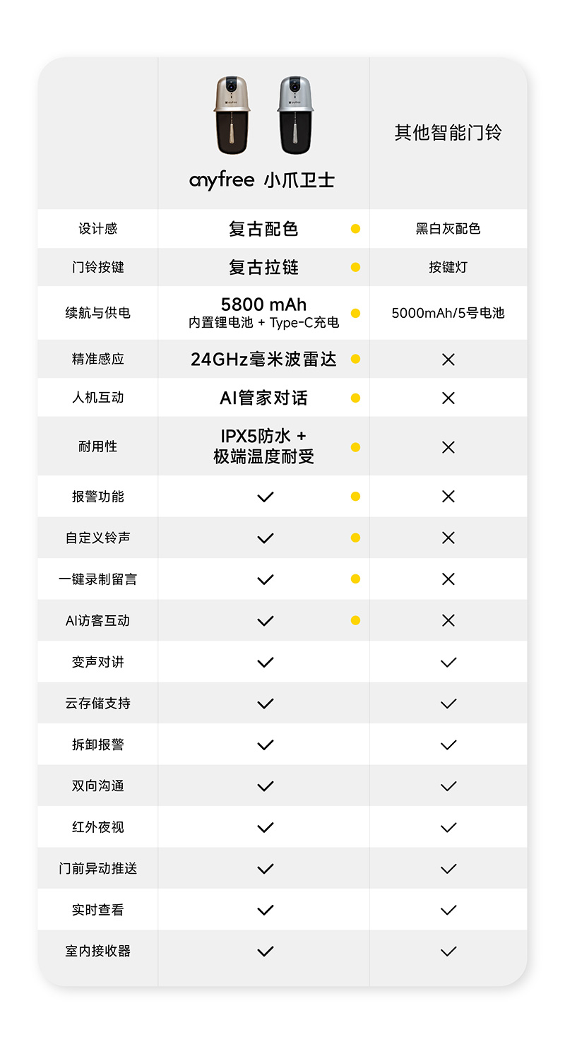 小爪卫士智能门铃复古金
